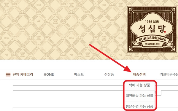 다양한 방법으로 성심당 택배 주문이 가능합니다. 위 사진처럼 배송선택을 통해 주문해보세요.