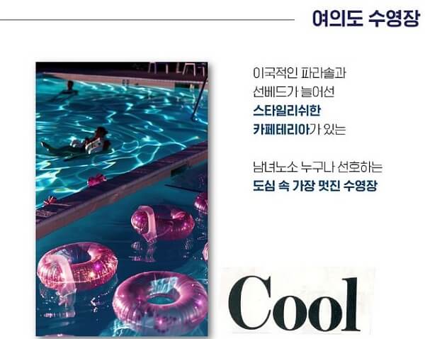 특히 야간개장하는 3군데(여의도, 잠원, 난지) 한강 수영장별 특징, 장점, 단점, 주차장 위치 등을 확인하세요! 바로 아래에서 예약하기 전에 빠르게 비교후 예약하세요!